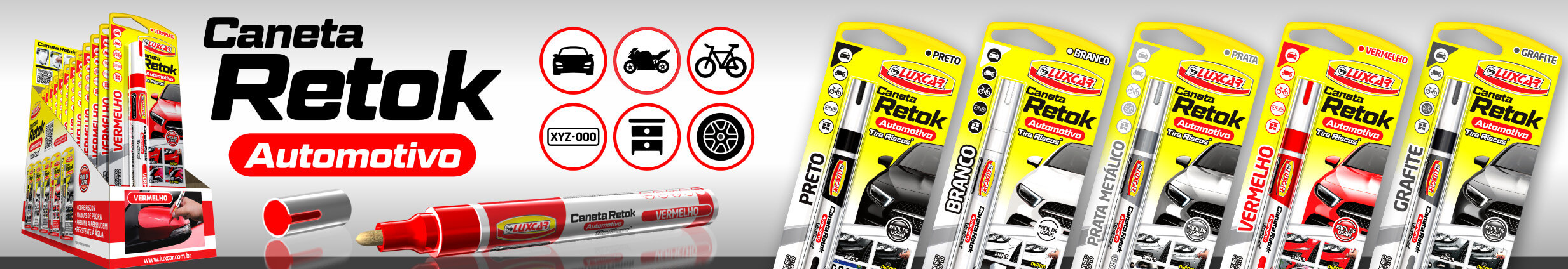 Mas não é só isso. As canetas Retok Tira Riscos Luxcar também podem ser usadas para pintar pneus, restaurar móveis, rodas, placas, personalizar detalhes no painel ou em aparelhos eletrônicos. As possibilidades são infinitas!